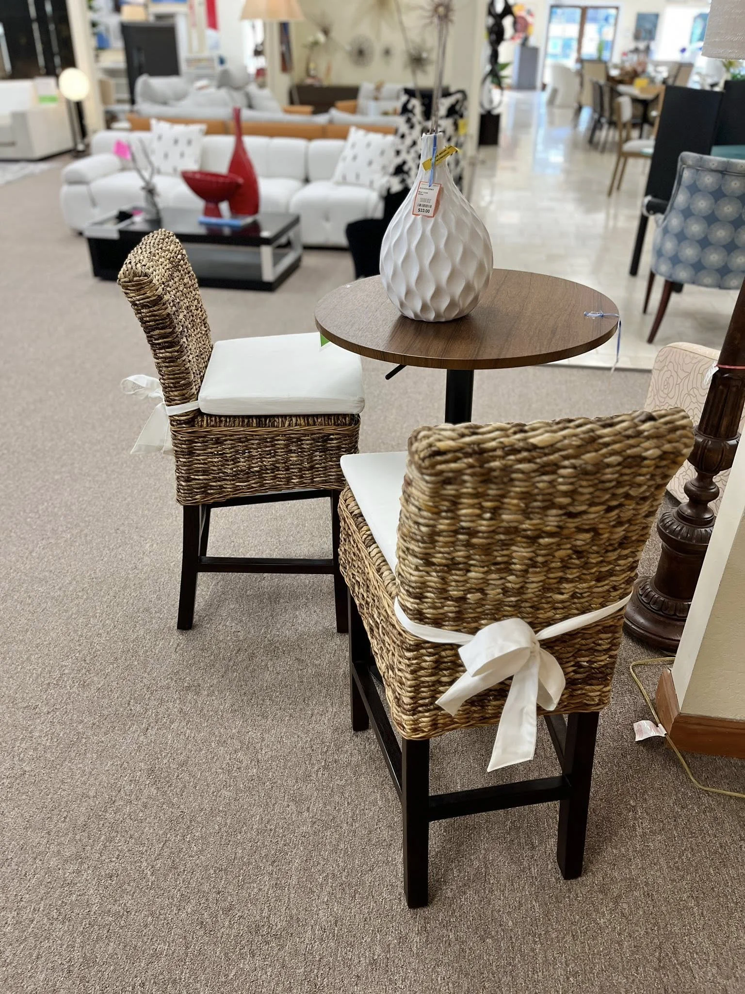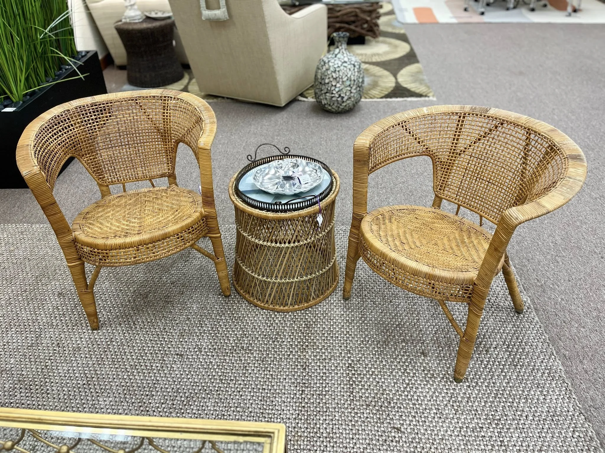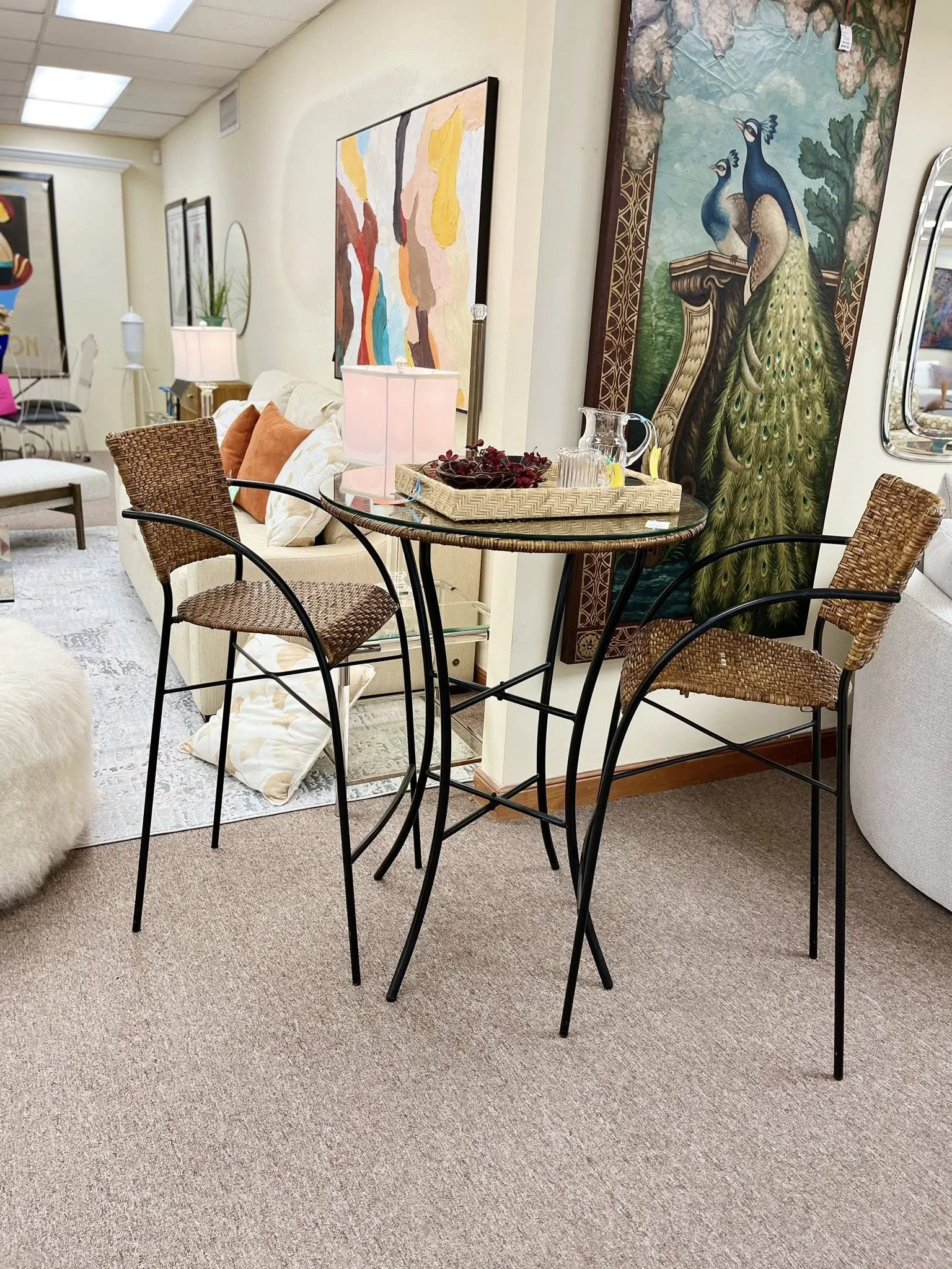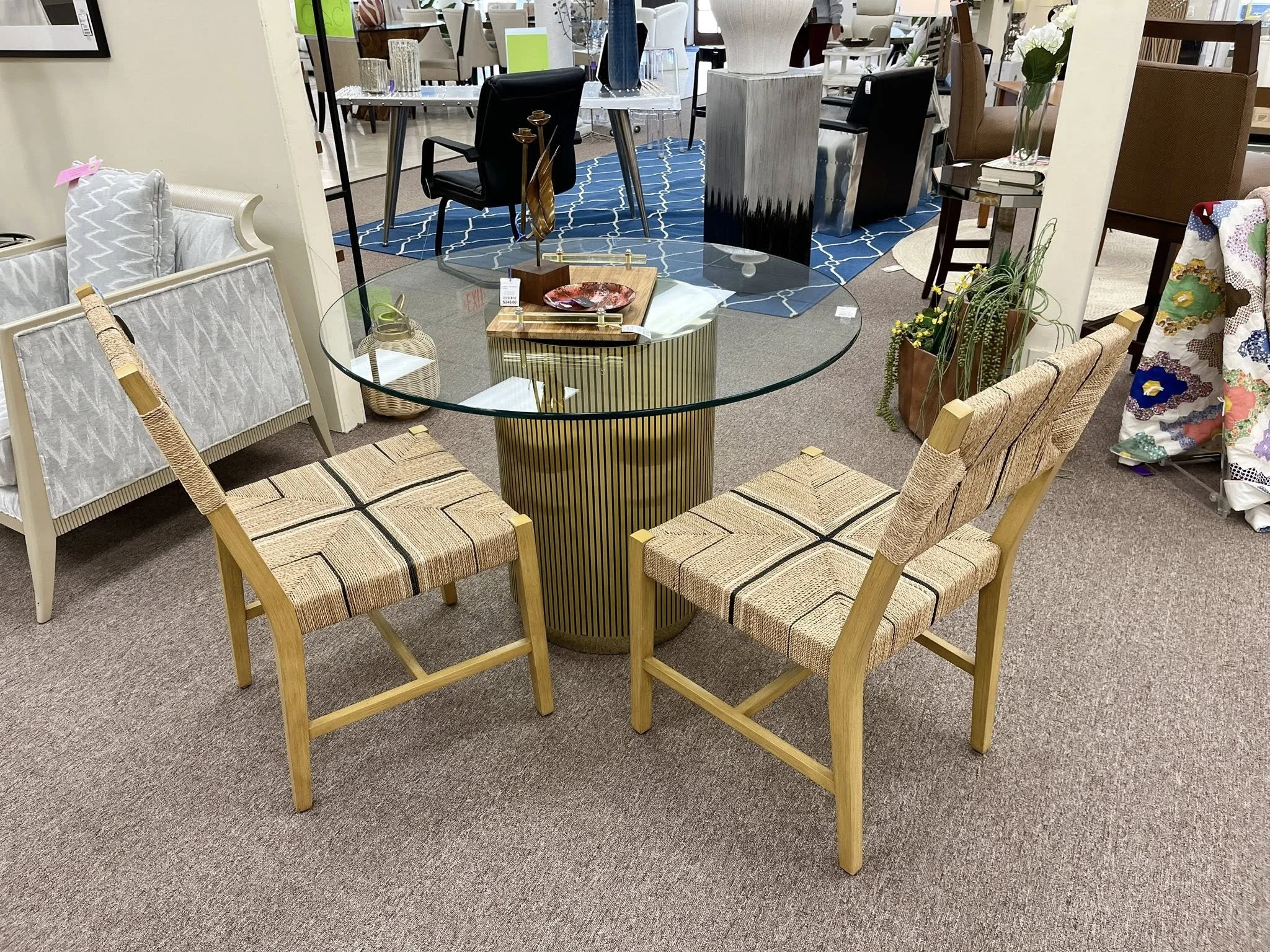 Woven Chairs, Extendable Glass Dining Table (Sold)