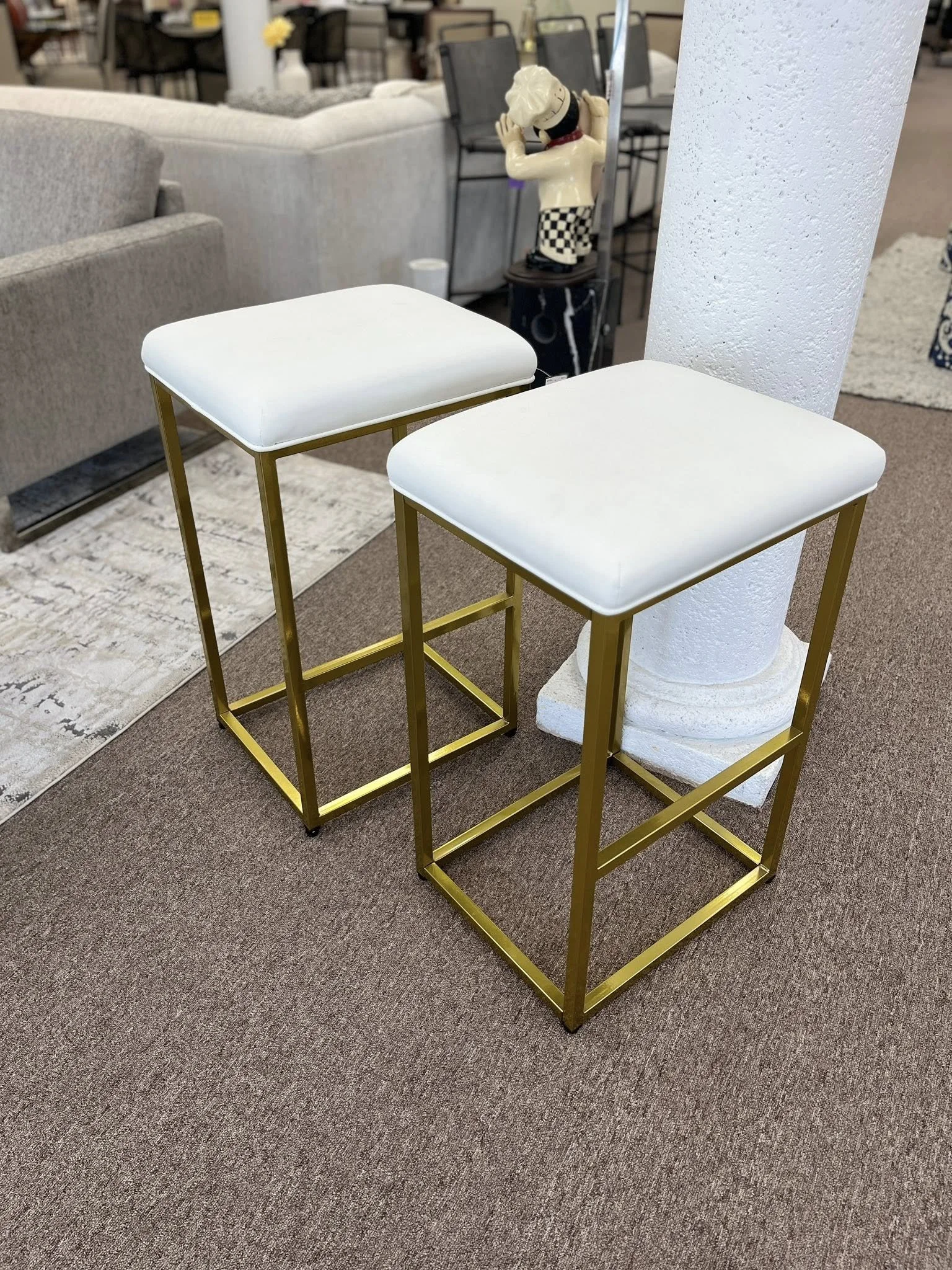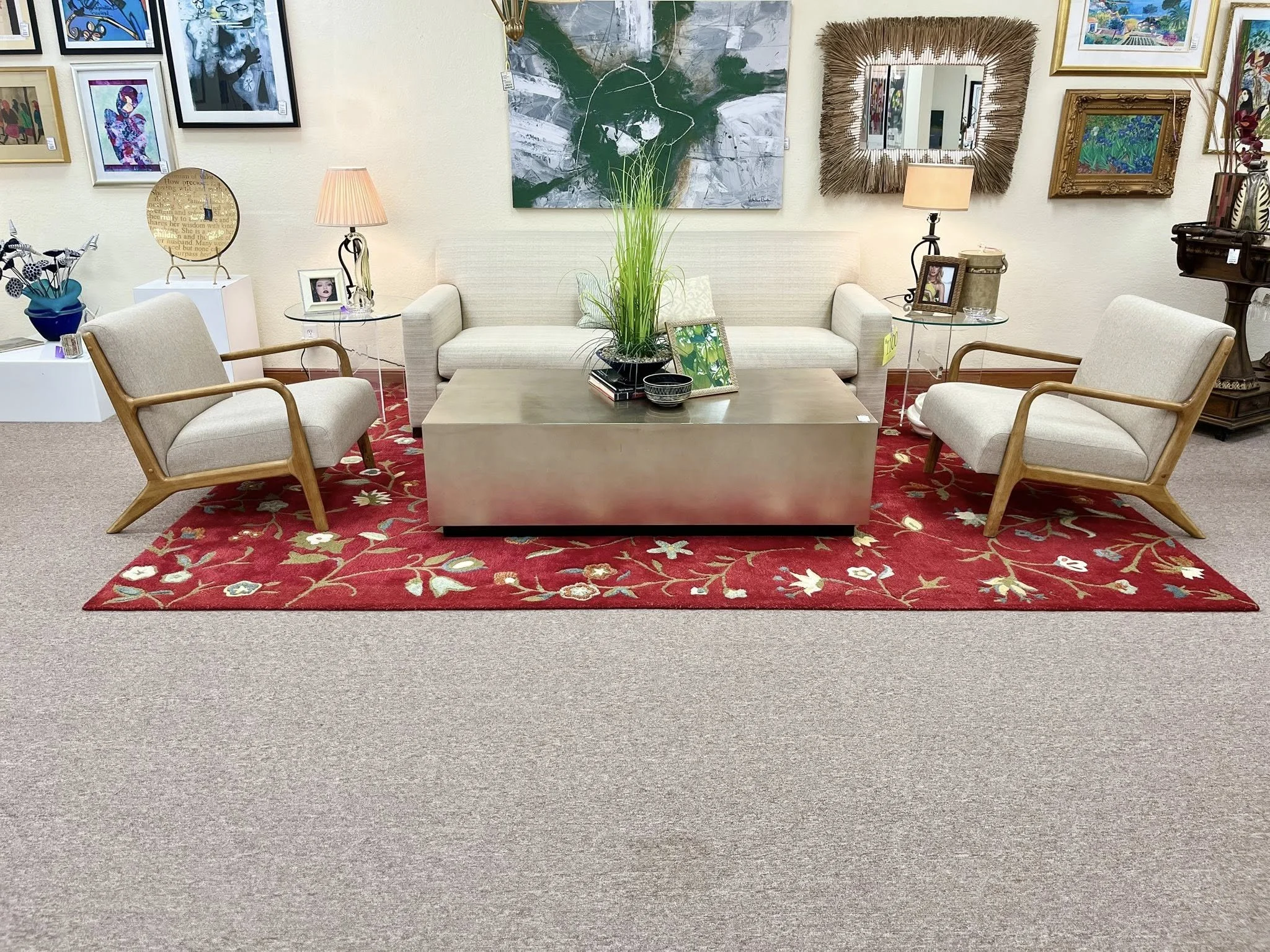 Century Chairs w/ Ottomans, Gold Coffee Table with Glass
