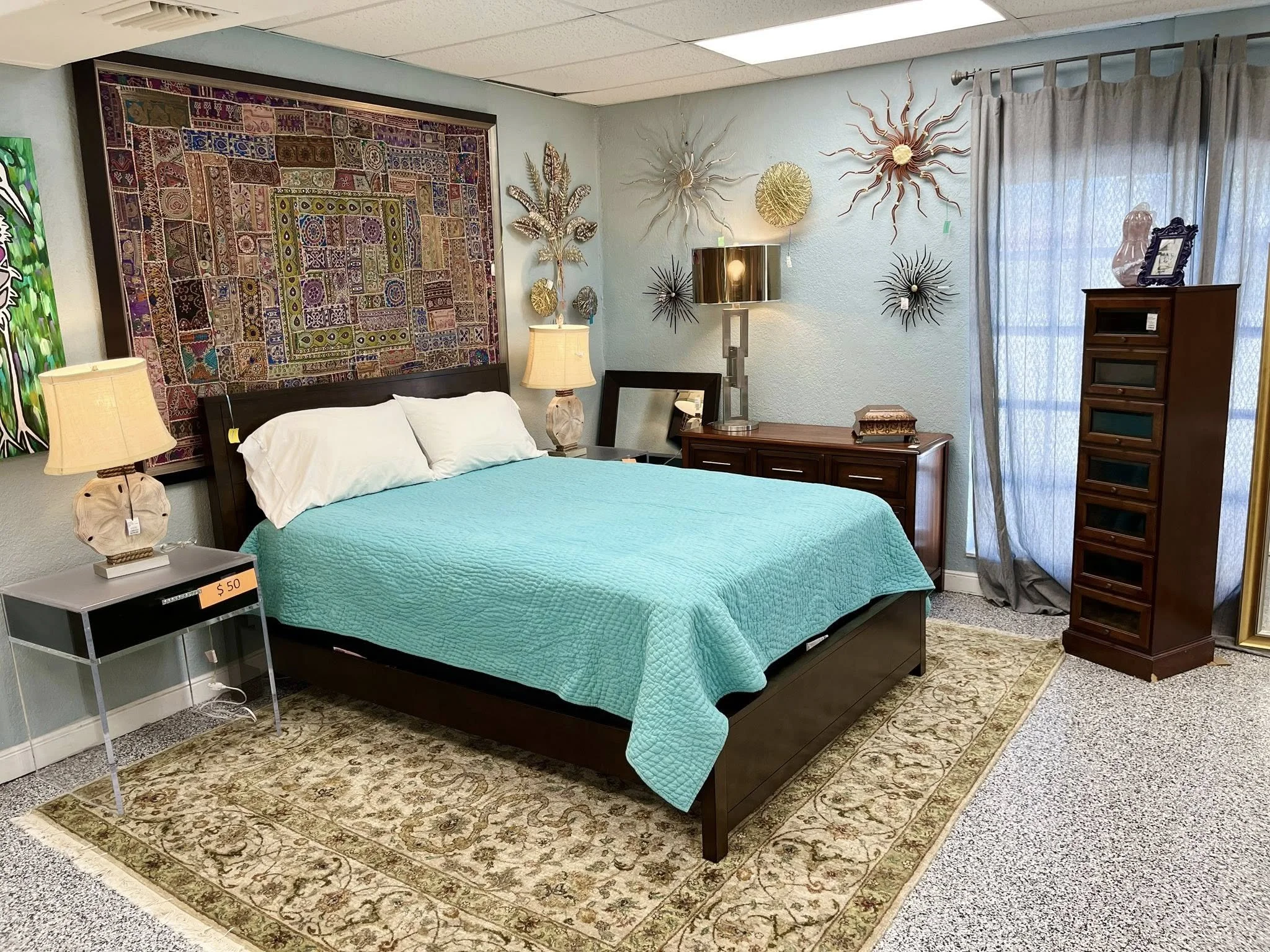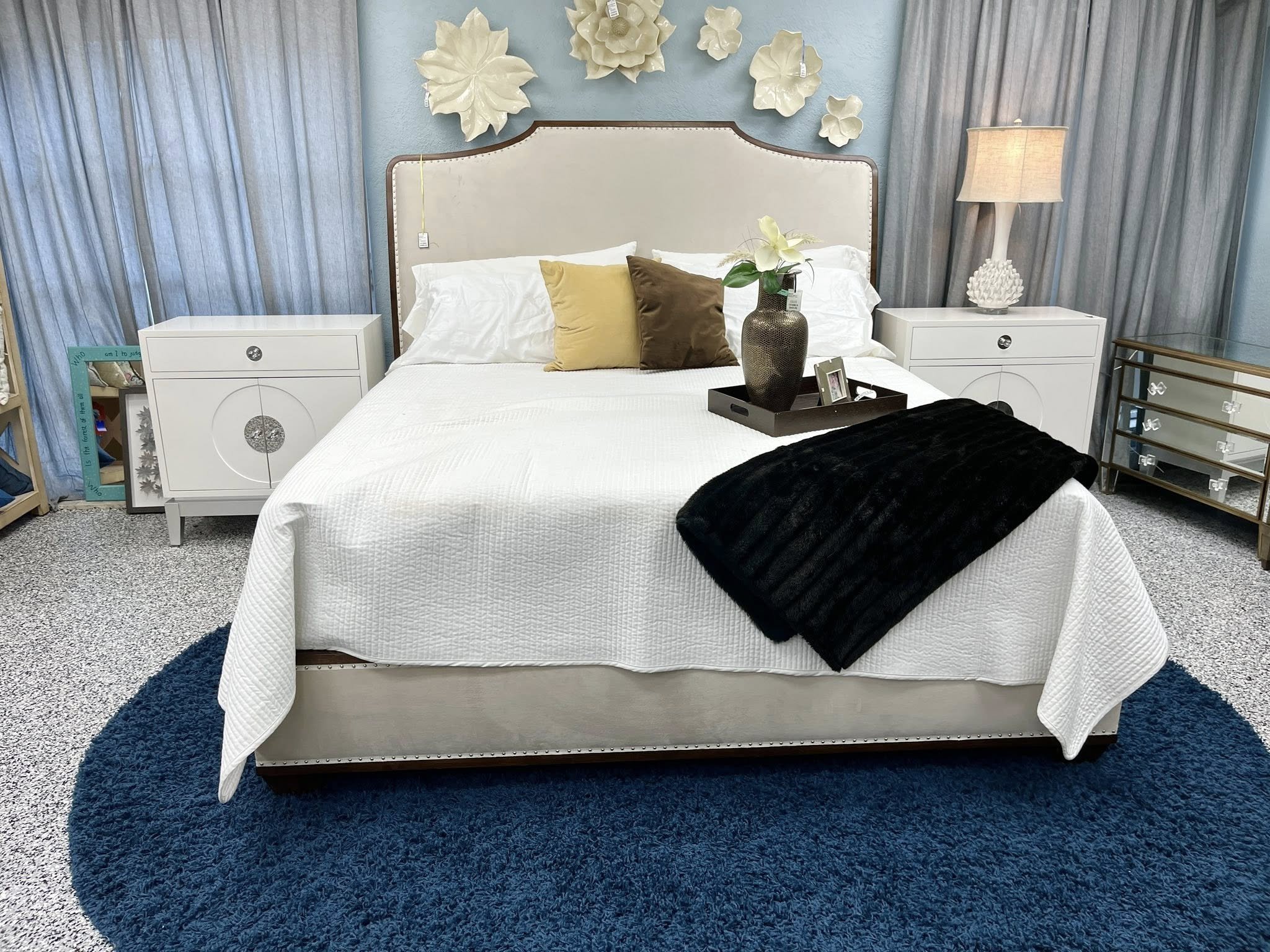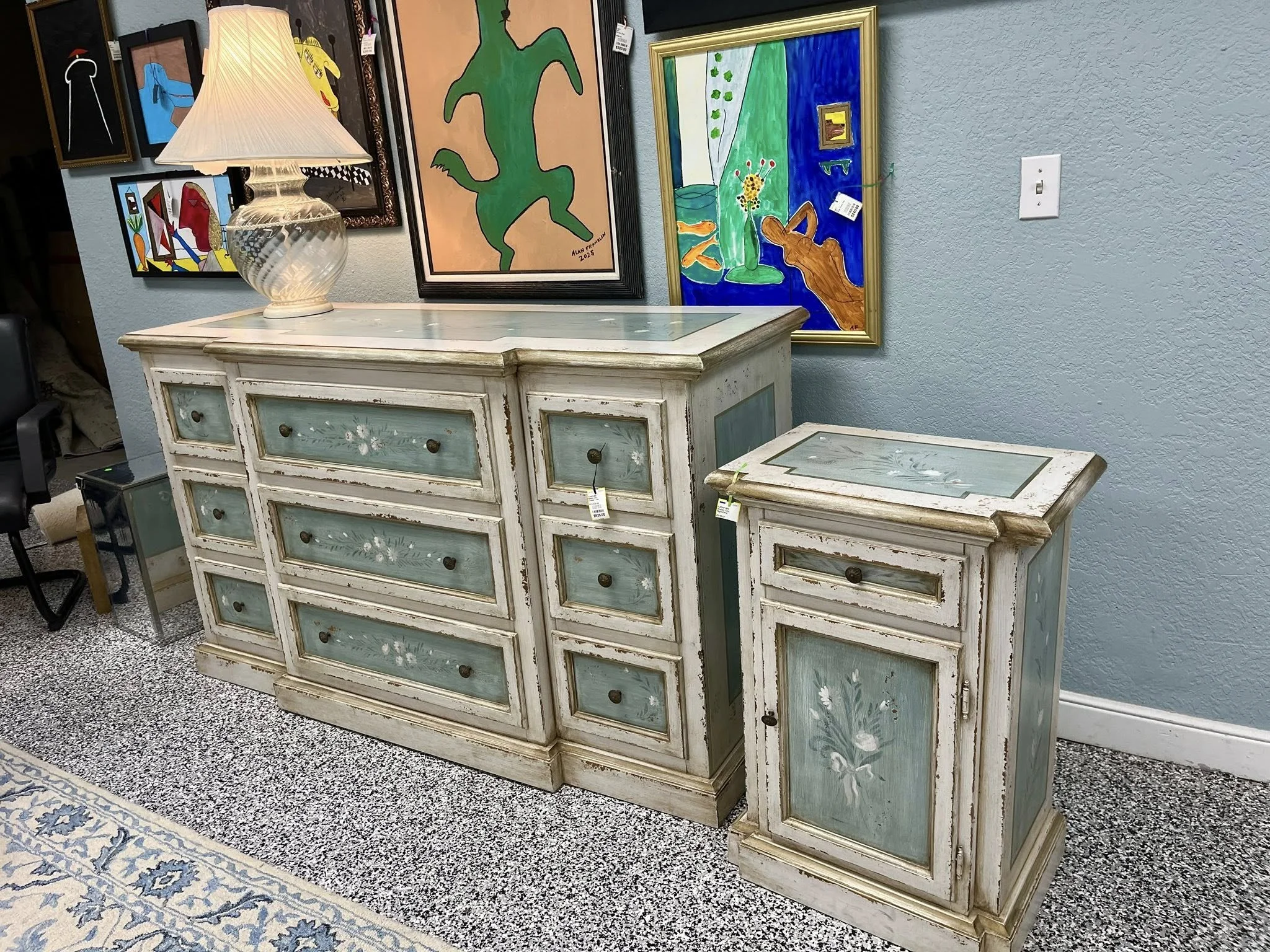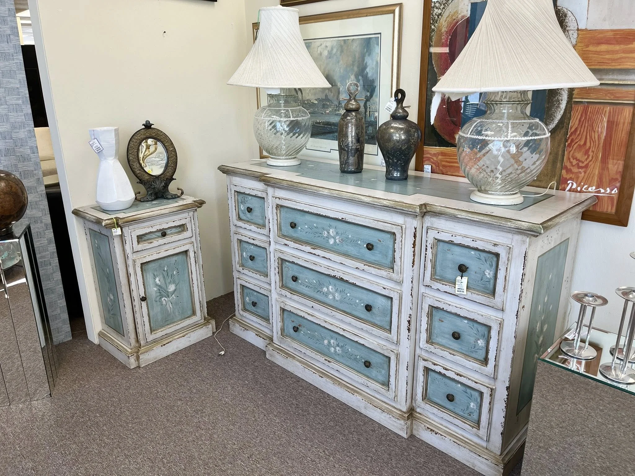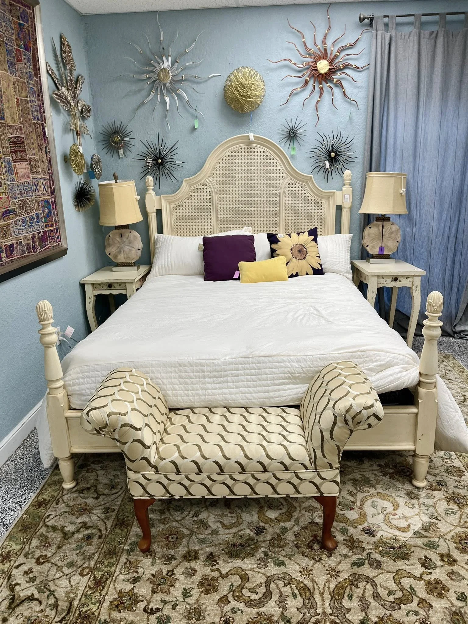 Queen Bed, Shabby Chic End Tables (from Italy)
